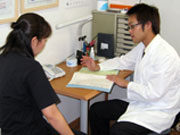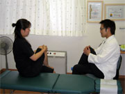 症状について詳しくお聞きします。初診時には問診が一番重要といっても過言ではありま せん。問診をしっかり行うことにより、だいたい70%くらい症状の起こっている原因が 絞れます。